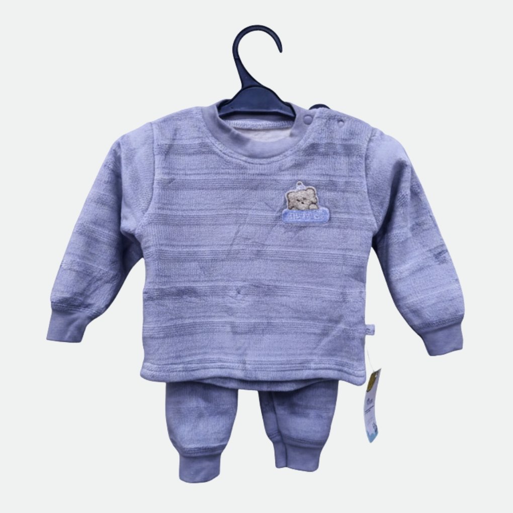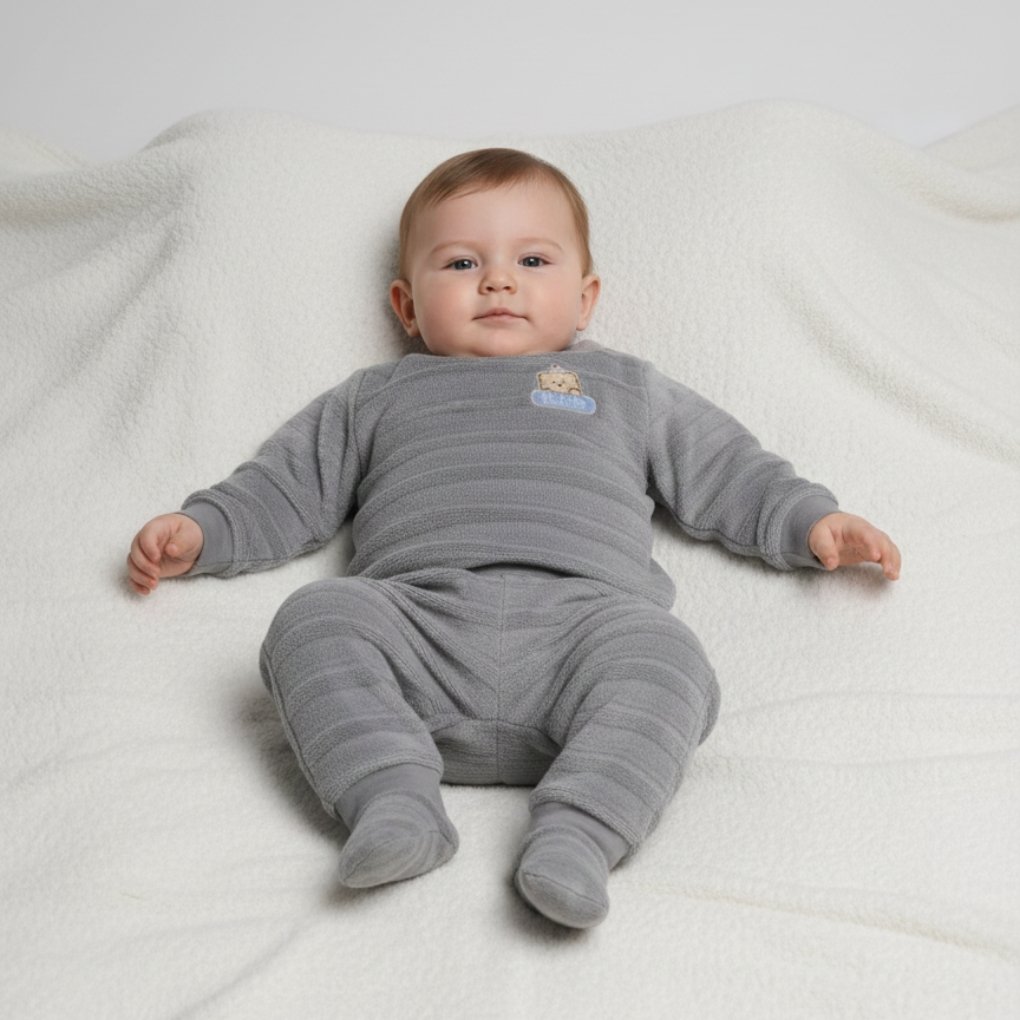 طقم ملابس بيبي شتوي ناعم – قطعتان بلون هادئ